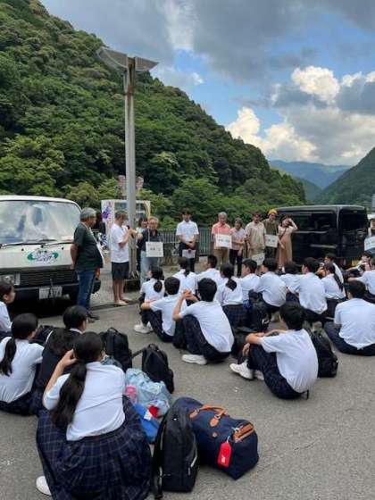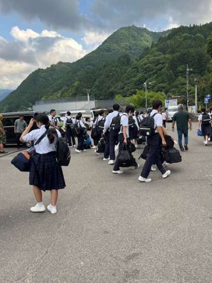 道の駅まで、各家庭から迎えに来ていただきました。入村式を行い、それぞれに分かれて移動しています。