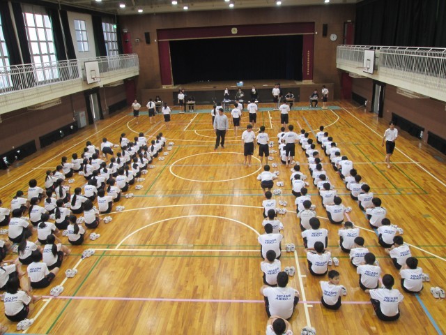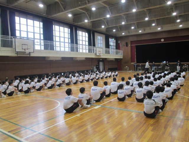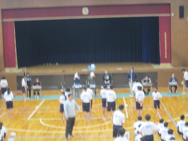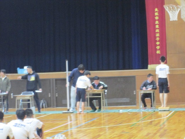 2年生が体育館で二測定を行っています。昨年と比べてどれくらい身長が伸びましたか?