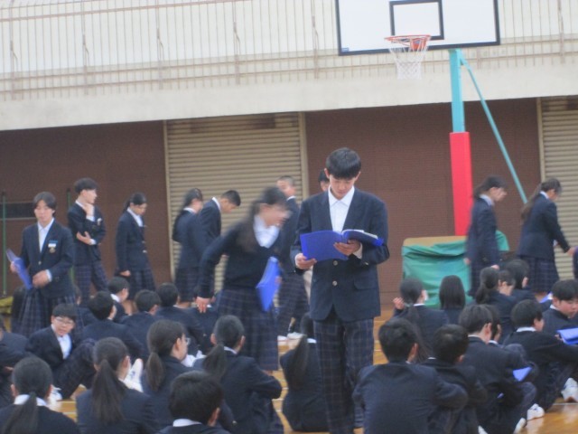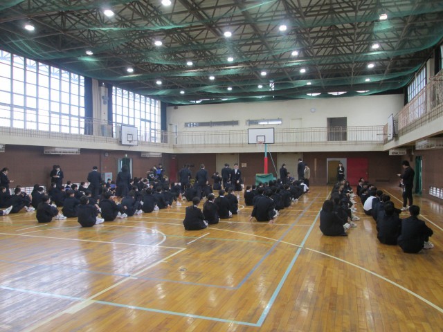 3年生が学年集会の形でオリエンテーションを行っています。昨年度の資料を新クラスに集まりなおして整理したり、3年生になった心構えなどのお話などがありました。