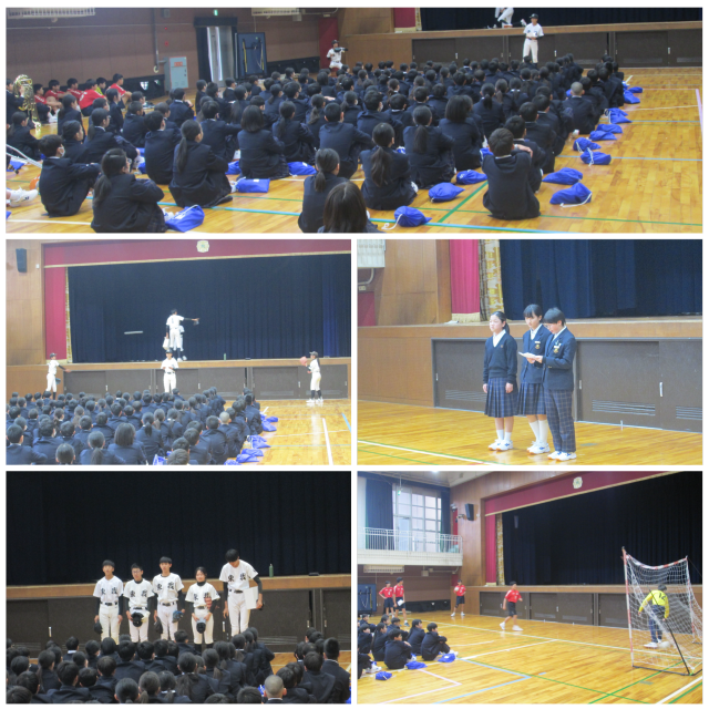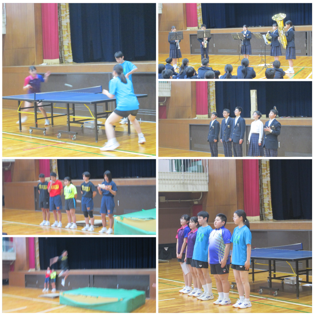 9日6時間目に1年生を対象に部活動紹介を行いました。各部活動の代表の人たちが1年生のために工夫を凝らしてパフォーマンスをしてくれていました。中には1年生を挟んでボールのラリーを行ったり、体験型の部活動もありました。1年生の皆さん、ぜひ部活動に入部して、充実した中学校生活を送ってください。