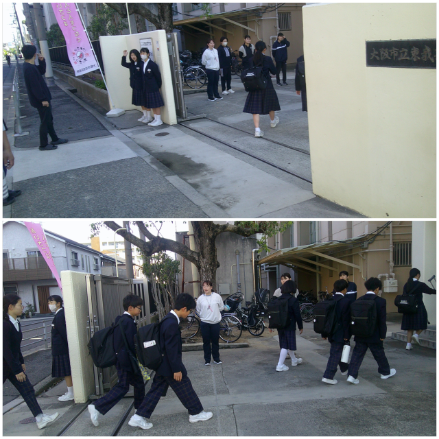本日の朝登校のようすです。昨日までの雨もあがり、快晴の朝となりました。今日も頑張りましょう。