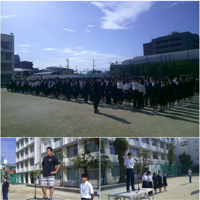 本日は朝からグラウンドで全校集会を行いました。校長先生からいろいろな人と最初に出会って人物を判断されるファーストインスピレーションとして、「あいさつができる」、「時間を守る」、「身だしなみを整える」ことを大切にしてほしいとのお話をしました。また、1年生は本格的に部活動が始まりました。充実した中学校生活を送ってください。
