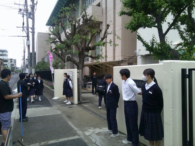 本日の朝登校のようすです。登校時、早朝からの雨はやんだものの風も吹いており幾分寒さの感じる朝となりました。門にはたくさんの先生と生徒会の人が立ち、朝のあいさつと見守りをしてくれています。今日も頑張りましょう。