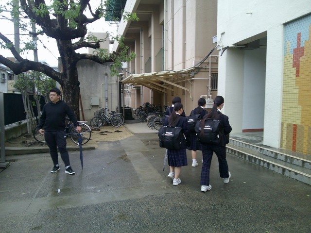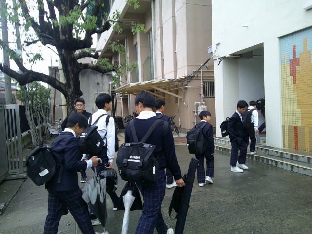 本日の朝登校のようすです。昨日の雨も若干残って霧雨が降っていましたが、徐々に晴れ間がのぞきだしました。今週もがんばりましょう。