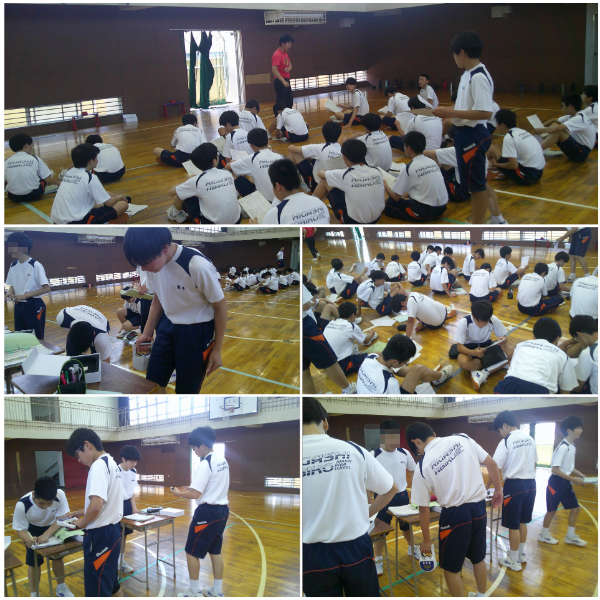 3年生3組、4組保健体育授業のようです。女子では50m走、男子は握力測定でした。昨年度の記録と比べてのびましたか?