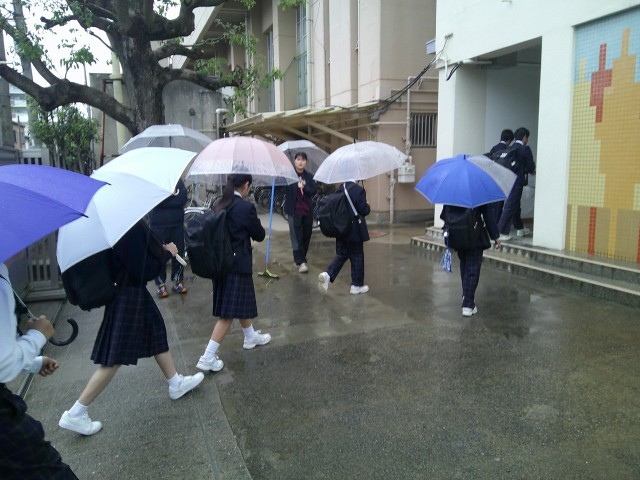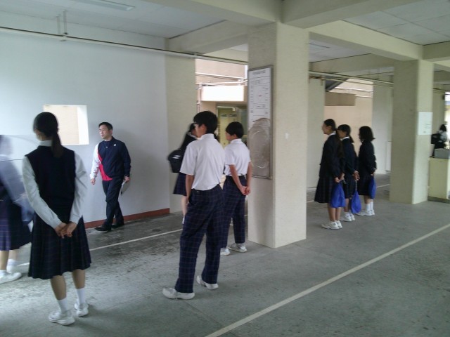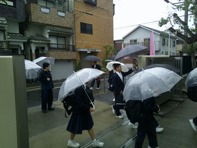 本日の朝登校のようすです。朝から雨が降り続いており、寒さを感じる日となりました。生徒会の人も雨に濡れないところであいさつ運動をしてくれています。今日と明日の2日間がんばればゴールデンウイークに突入します。頑張りましょう。