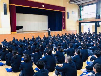 週の始めは、全校集会を行います。今日は、校長先生からは、これから皆さんが節目で出会う試験では、「文を読んで理解する力」が必要であるため、たくさんの本を読みましょうとのお話がありました。