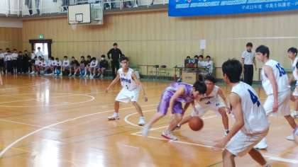 東成区の相生中学校で、バスケットボール男子の「大阪市春季総合体育大会」の試合が行われています。本校男子バスケットボール部は、ベスト16をかけて、大正区の大正北中学校と激闘。序盤、本校男子バスケ部は流れにのれず、苦しい展開。しかし、ハーフタイムでの監督顧問の「強く攻めろ!」の指示に、後半戦、本校選手たちが、相手ディフェンスに当たっても強くシュートコースをこじ開けて、多数のゴールにつねげて逆転。
