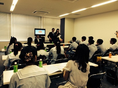 区長さんより歓迎の言葉と住吉区の説明を受け、全員で記念写真を撮って、学校に向かいました。