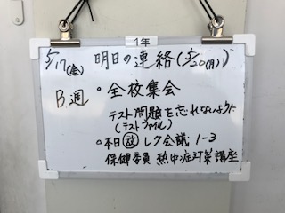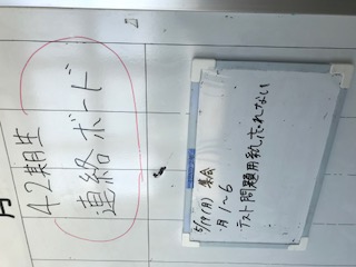 職員室前の扉付近には、明日の予定や今日の予定が書かれているミニボードがあります。