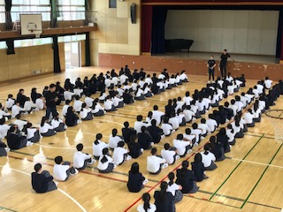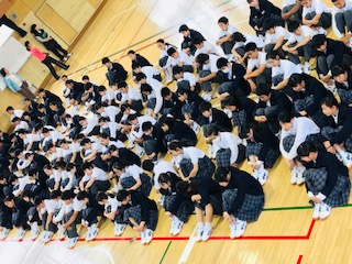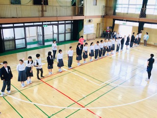 1年生はテストも終了し、再来週から始まる一泊移住のための学年での並び方を確認しました。