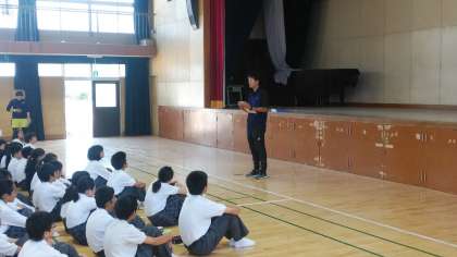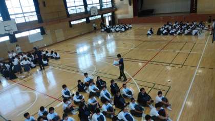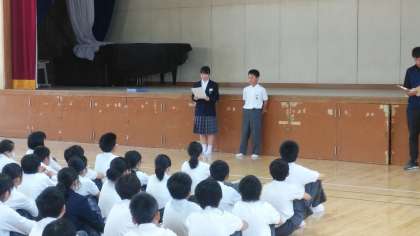 金曜日の朝は、1年生が定例の「学年集会」を開きます。今日は、来週の一泊移住に向けて、係別に分かれて、係別会議をしました。