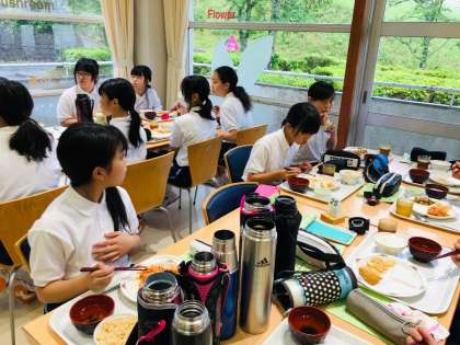 「ごちそうさま」のあとは、キャンプファイヤー(キャンドルファイヤーになるかも)で、学年の絆を深めます。このあとのプログラムについては、明日また、引き続きホームページにアップいたします。本日のホームページへのアップは終了いたします。19時現在、現地教員からは、生徒のみなさんが、ケガをしたとか、体調が大きく崩れたといったことはないとのことです。本日はたくさんの皆さまにホームページを閲覧いただき、誠にありがとうございます。明日も引き続き、多くの方々が、閲覧くださいますようお願い申しあげます。