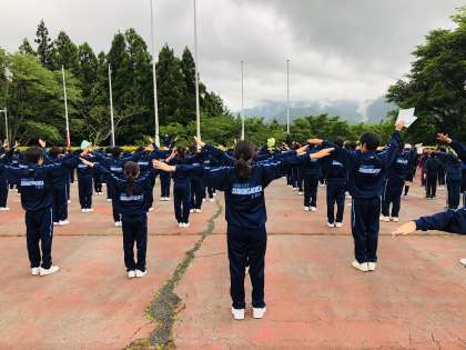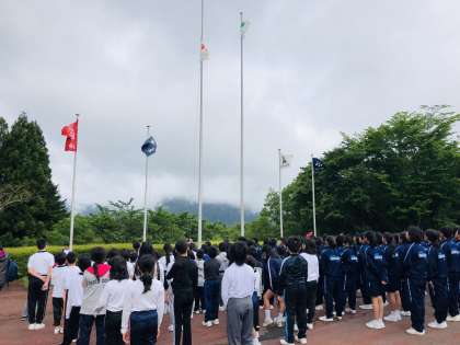 昨日からの雨はあがり、7時から「朝のつどい」をしました。宿舎に滞在している、すべての児童・生徒が集まり、あいさつ、ラジオ体操をして、気持ちいい朝を迎えました。大きく体調を崩す生徒のみなさんもいないとのこと。今日も1日がんばるぞ!チーム43
