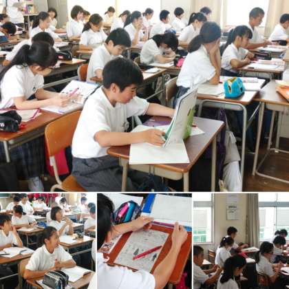 小学校と中学校の連携取り組みの1つとして、本日は、清水丘小学校の旧担任の先生方にお越しいただいて、少し中学生として成長した姿を、授業を通してご覧いただきました。