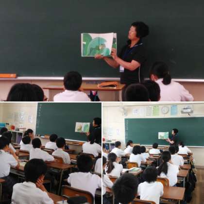 今日は、「朝の読書タイム」で1年生のクラスで、読書ボランティアさんによる「読み聞かせ」をしていただきました。