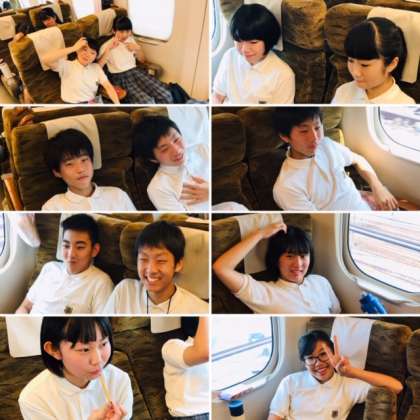 新幹線の中では、おやつを食べながらUNOをしたりトランプをして過ごしています。新八代駅に12時21分に到着予定です。
