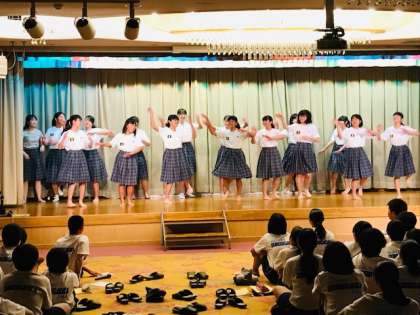 担任の先生といっしょに、クラス女子で、ダンスを披露しています!カッコイイ!