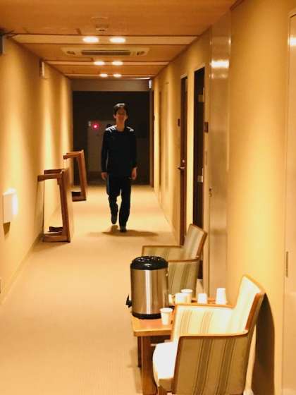 先生たちも交代で廊下に待機して見守っています。