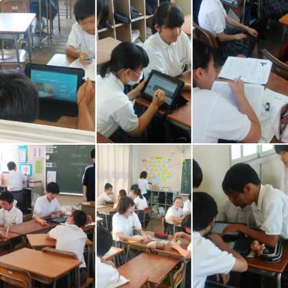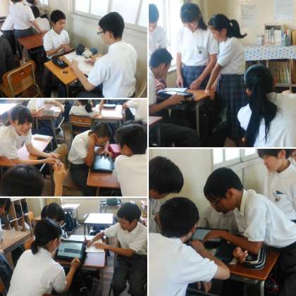 2年生は、先日、各事業所へ訪問させていただいて、事前に調べ学習したことで、「仕事に関する疑問点」など、インタビューをさせていただきました。それをもとに、タブレット等を使って、まとめをして、学年への報告のための準備をしています!!