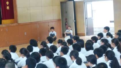 金曜日は、1年生が、定例の「学年集会」を開きます。担当の先生からは、あいさつが「自然なあいさつ」が自分の身になるようにとの講話がありました。