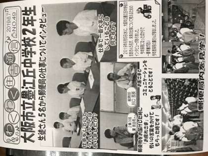 それに対応できるように自分たちで考え、発表する力をつけるために2年生は地域の職場に協力をいただき、インタビューをして、まとめ、発表する取り組みをしています。