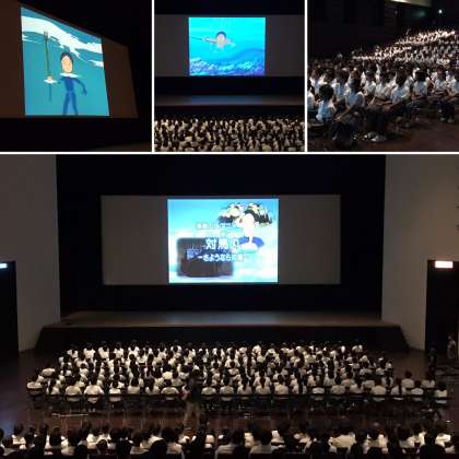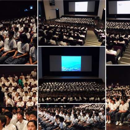 昼食後、午後から、全校生徒は、「住吉区民ホール」へ移動し、「対馬丸ーさようなら沖縄」の映画鑑賞を行いました。