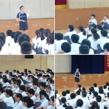 毎週金曜日の朝は、1年生が定例の「学年集会」を開きます。担当の先生からは、「うさぎとカメ」のお話を交えて、1学期の振り返りの講話がありました。