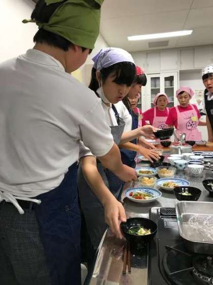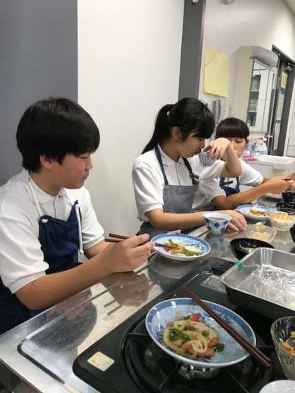 住吉区の健康保健センターの栄養士さんらのご指導を受けながら、バランスよい食事を作りました。