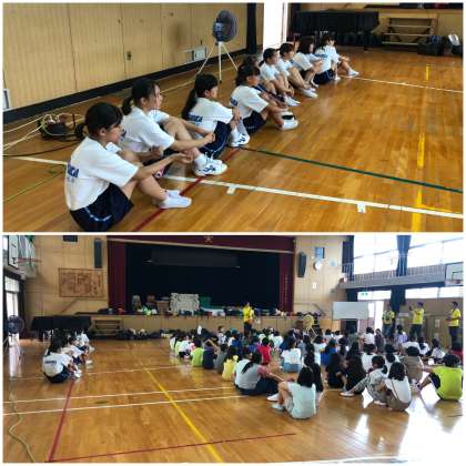 墨江地区の「学校へ泊まろう」に墨江丘中学校の生徒がボランティアとして参加しています。