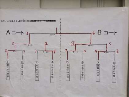 相手は三稜中学でしたが、8対7で接戦を勝利し、準決勝に進出しました。次の対戦は、大和川中学でしたが、こちらは、8対2で圧勝、決勝進出を決めました。