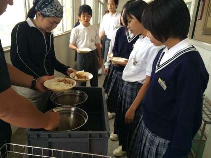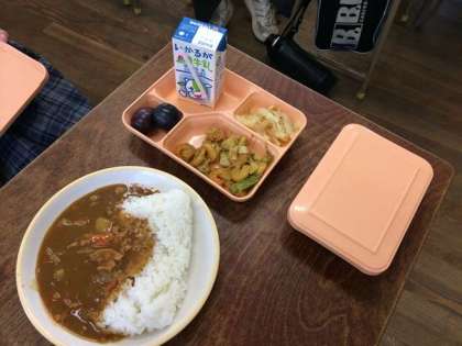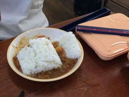 ごはんのお代わりをもらって、大盛りカレーにする人もいます。