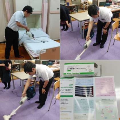 寝具やカーペット内のほこりやダニを、簡易検査キットでチェックします。