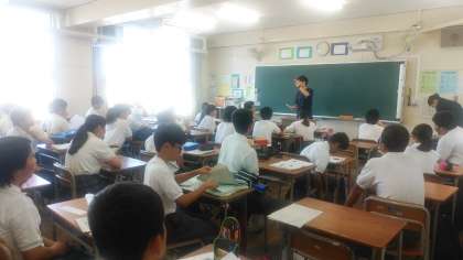大清掃後、各クラスでは、「学級活動」が行われています。通知票や宿題の回収、アンケートや明日からの給食の配膳についての説明がありました。