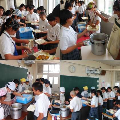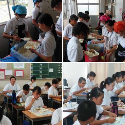 親子方式の給食も3日目となりました。今日の献立は、大半のみんなが大好き「カレーライス」です。校内にカレーの香りが漂い、来校者の方も、「いい香りですね!今日はカレーですか?!」とのフレーズが連発です。