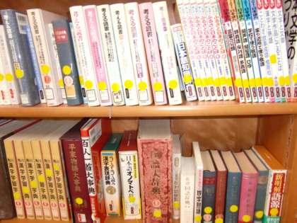 写真のように国語科については黄色いラベルで、本をさがしやすくしています。