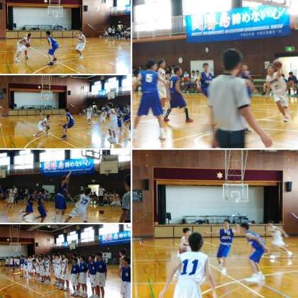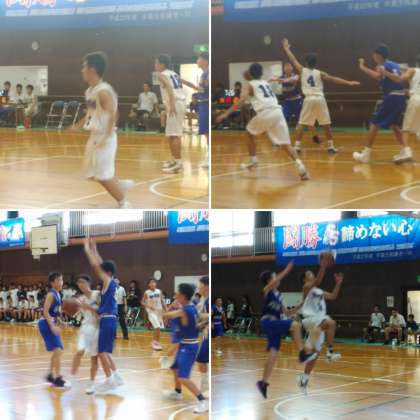 男子バスケ部は、大領中学校体育館で、私立の清風中学校と対戦しました。スタート直後から、トランジットの激しい展開になりました。一進一退の攻防です。