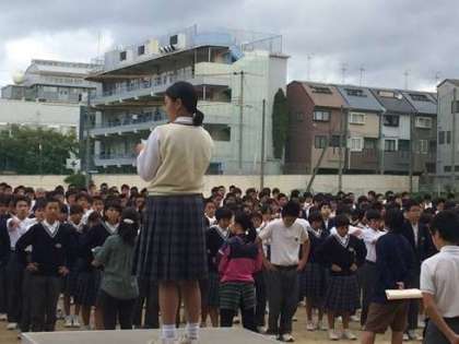 14日、連休の台風も通り過ぎ、爽やかな朝の全校集会となりました。