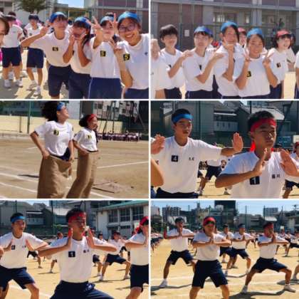 各学年の先生、体育委員が夏休みから体育大会に向けて色々とアイデアを出し考えて作っていくのが学年演技です。