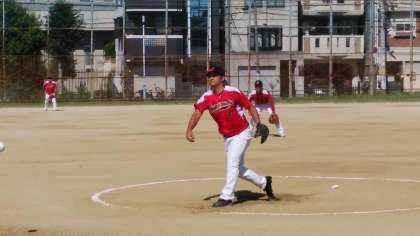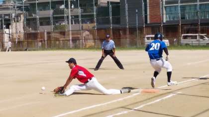 この日1日、大領グラウンドで「住吉区男子ソフトボール大会」の本戦が行われ、熱戦が繰り広げられました。