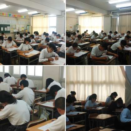 本日、3年生は、国社数理英・5教科実施の「大阪市統一テスト」に臨みました。学校での学習状況とともに、このテストの結果が個人の成績に反映される部分もあります。