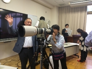 写真は、実際に使われているカメラを体験させていただいたものです。