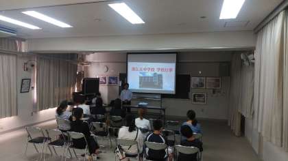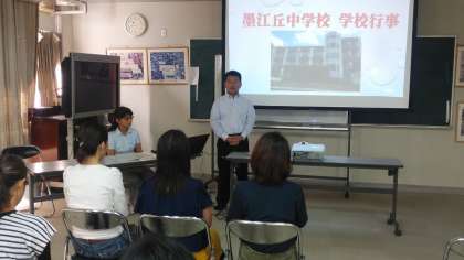 本校の授業の様子等を見ていただき、その後の「学校選択制説明会」にもご参加いただいて、学校長からの学校紹介やパワポを用いた「墨江丘中学校の1年間の行事」を見聞きしていただきました。