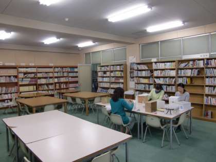 本校図書館では、図書ボランティアの皆さんに、図書館を使いやすくするために