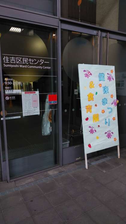 午後から、住吉区民センターで、「食育展」並びに「健康まつり」が開催されています。