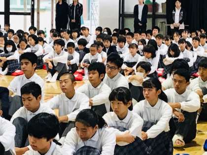 (一人はみんなのために、みんなは一人のために)という、ラグビーなどでチームワークを表す有名な言葉をラグビーから学び、文化祭の合唱にむけて全員で頑張ろうとお話がありました。