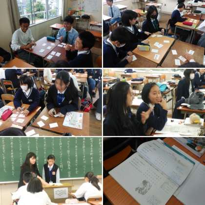 本日も台湾正徳国民中学校の生徒のみなさんに来校してもらい、今日はいっしょに、日本の学校の授業を体験してもらいました。