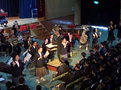 先生たちも吹奏楽部と一緒に会場を盛り上げます。