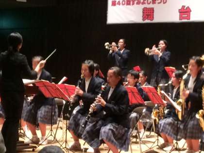 本校、吹奏楽部は、区民センターでの舞台発表の部に招待いただき、演奏を披露しました。