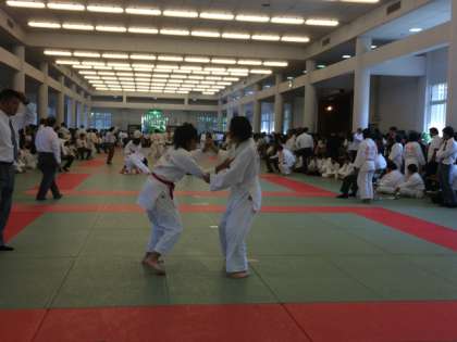 「大阪市立修道館」 大阪城内にある武道場で、もとは警察学校道場であったところに中学生などの武道育成のため建てられた施設。柔道場は6面取れます。